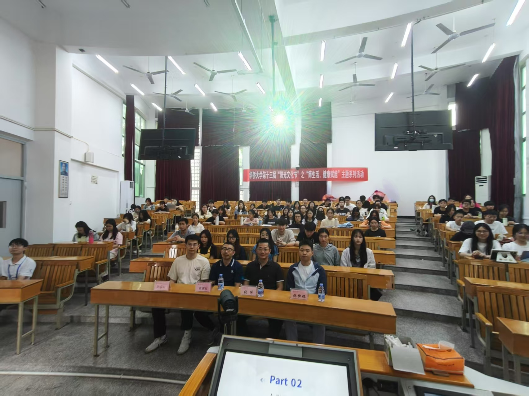 讲座结束后,主持人详细介绍了活动流程,涵盖“简生活,健康赋能”主题讲座、BMI挑战赛、BMI测试以及健身操课堂四项活动。本次活动借助丰富多样的讲座和打卡,引导同学们体验“简生活”的美好,摒弃繁杂,回归生活纯粹本质,助力同学们养成良好的健康生活习惯,塑造积极向上的生活态度,培养出身心强壮的新时代青年。