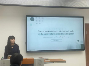 会议伊始,迟老师从理论与实证双重视角出发,围绕“公共中间品”这一核心学术议题,系统剖析政府行为如何通过政策工具、公共支出等方式作用于“公共中间品”的供给机制,同时结合国际贸易的全球背景,探讨国际市场动态、贸易规则等因素对“公共中间品”跨境流动与国内供给体系的交互影响。“公共中间品”在经济运行中扮演着关键角色,其供给效率与结构对产业发展、国际贸易乃至宏观经济稳定都有着深远影响。