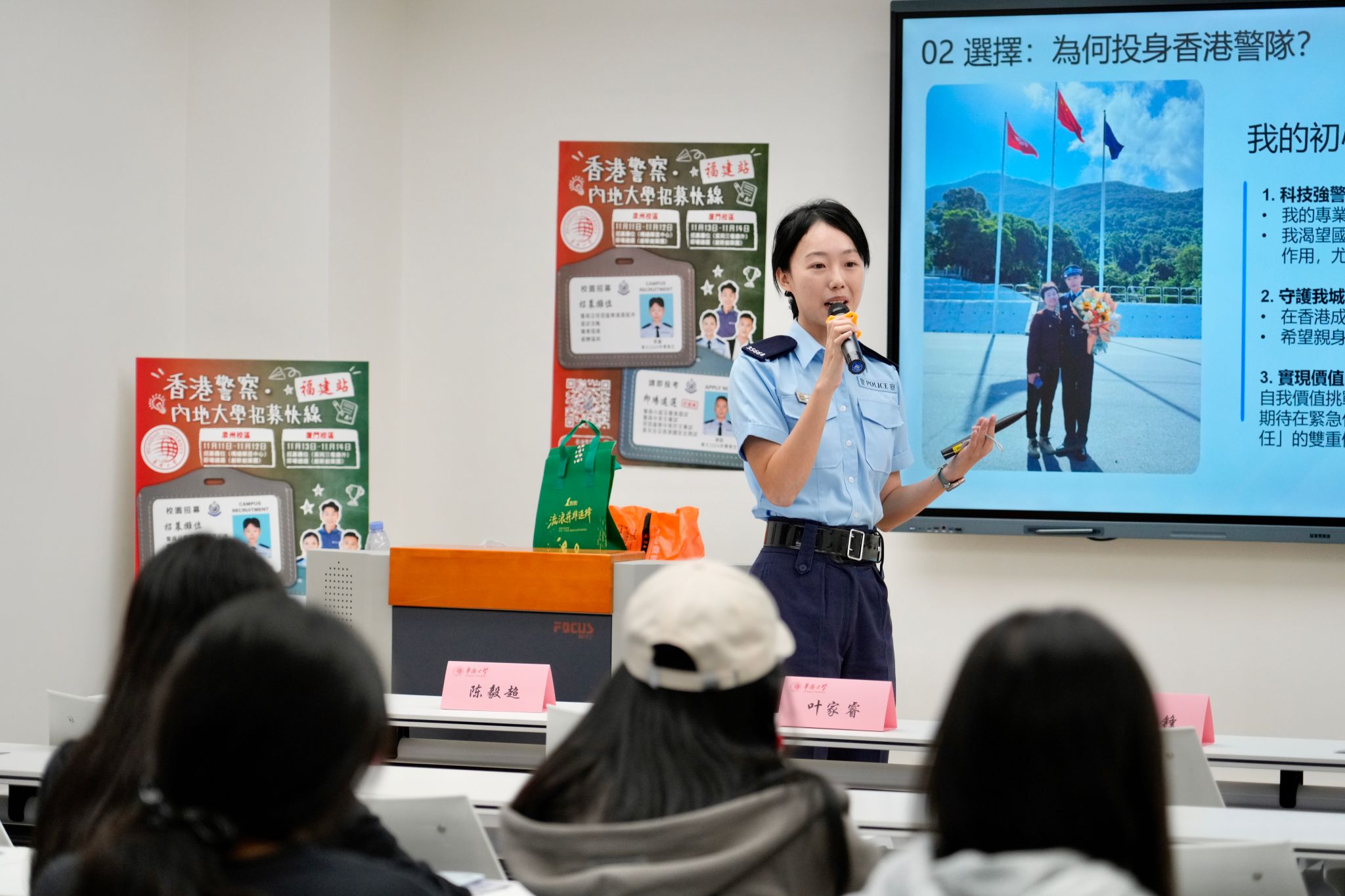 为增进内地与港澳学子对香港警队的职能认知、深化对“一国两制”下香港法治环境的理解,2025年11月11日,yl6809永利在806会议室开展第十三期“校友经英会”——香港警察招聘主题分享会。本次活动特邀yl6809永利2024届香港校友叶家睿担任主讲嘉宾。