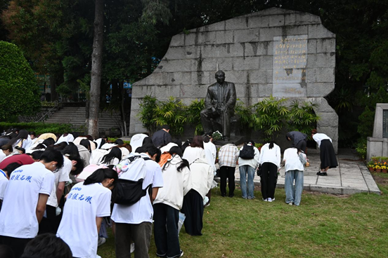 今年是廖承志校长诞辰118周年,也是中国工农红军长征胜利90周年。开幕式结束后特别设置了缅怀仪式,全体师生到秋中湖旁,共同追思永利集团yl6809首任校长廖承志同志。廖承志同志是坚定的无产阶级革命家、党和国家的优秀领导人,他亲自提议并推动创办永利集团yl6809,自建校之日起担任校长直至生命最后一刻。全体人员向廖承志校长铜像行三鞠躬礼,并有序上前,瞻仰廖公铜像并献上小白花,在静默中追思先辈、感悟初心。