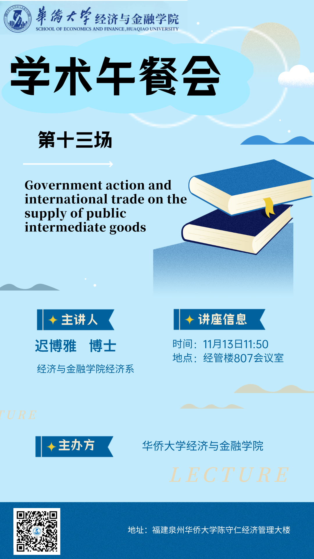学术午餐会第十三场预告 迟博雅 Government action and international trade on the supply of public intermediate goods